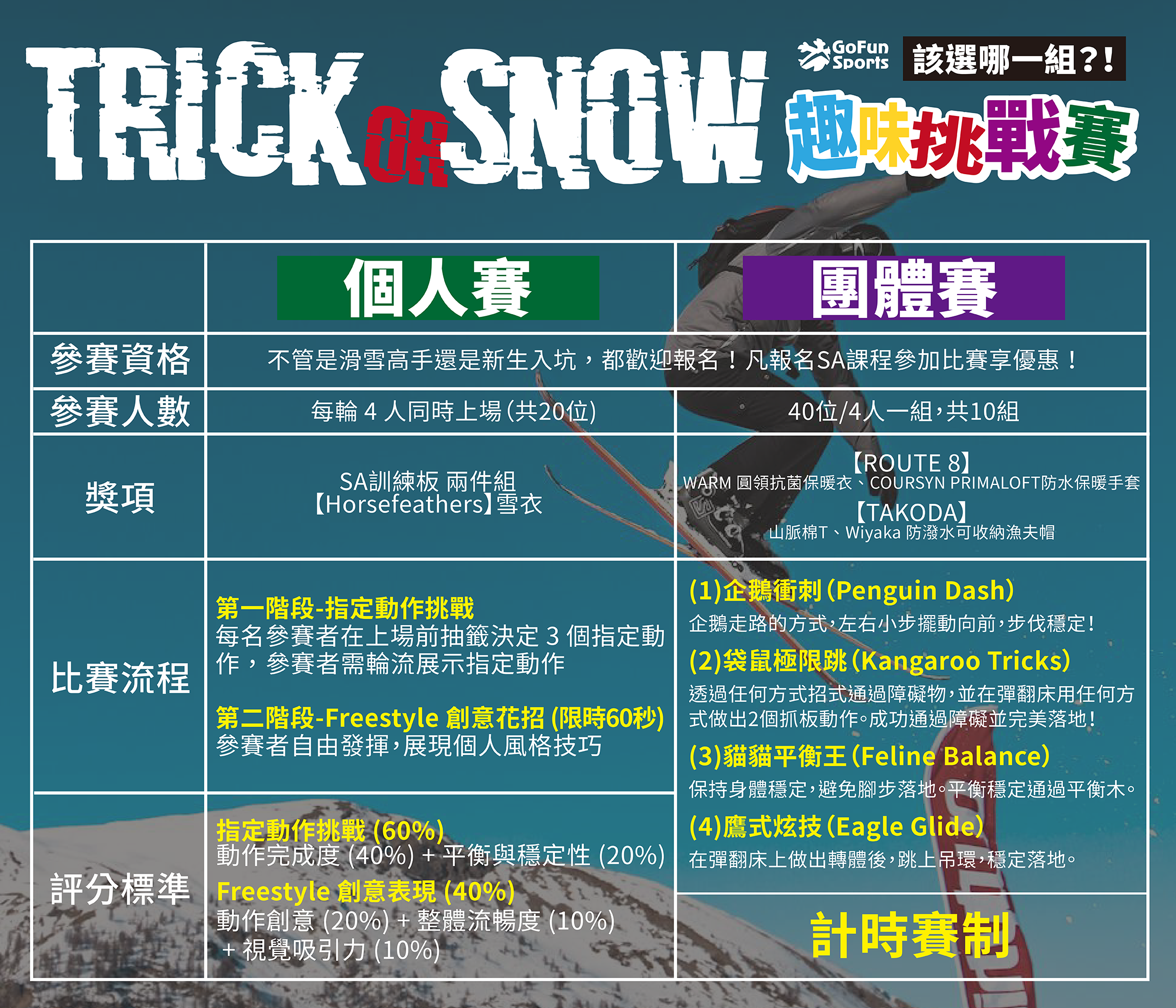 🏅 個人賽與團體賽優勝者將獲得獨家滑雪好禮!