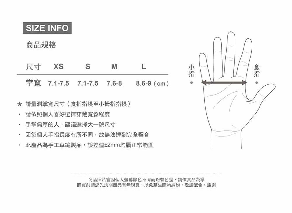 ***此款為合手設計款,腕縮口處較窄,以虎口服貼為主***