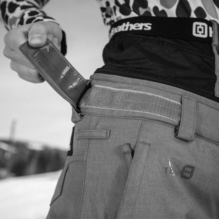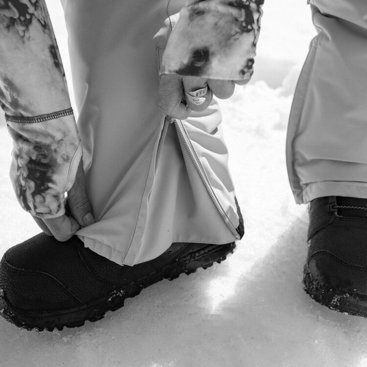 - 褲腳可開式拉鍊設計,可隨雪鞋大小調整