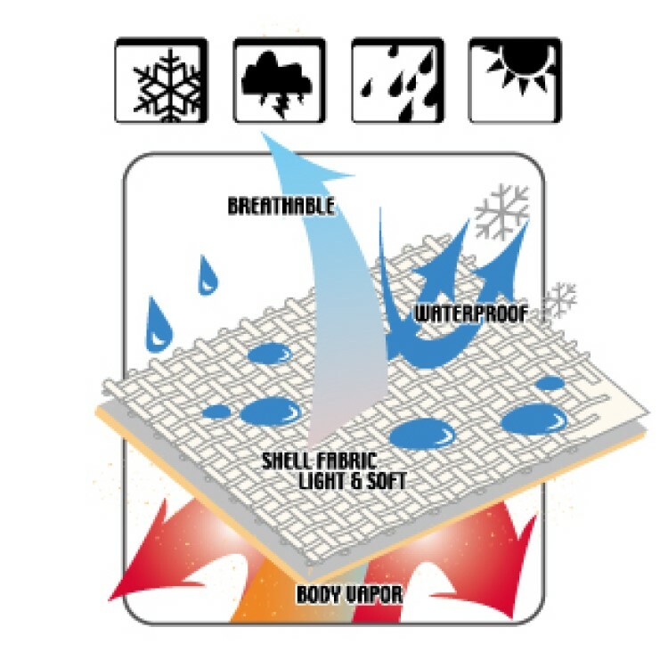 - 耐水強度10,000mm、透濕量5,000g/㎡/24h