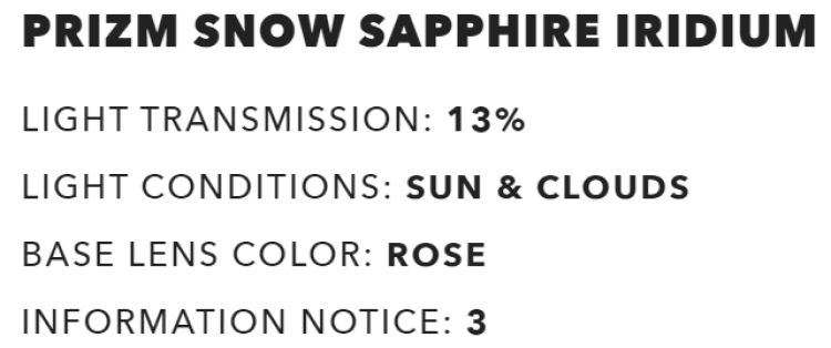 - 鏡片(球狀):Prizm Snow Sapphire IRID_S3(13%)