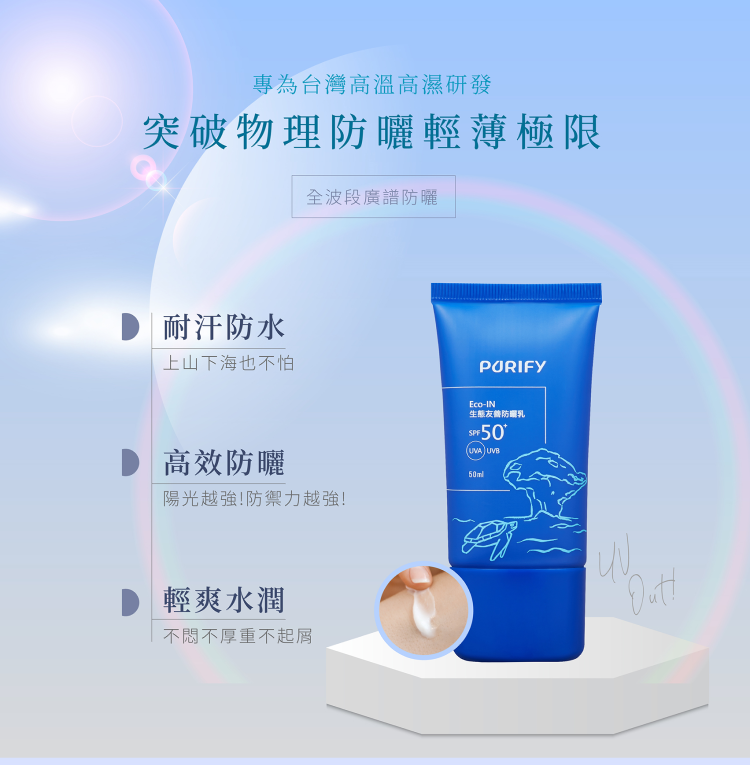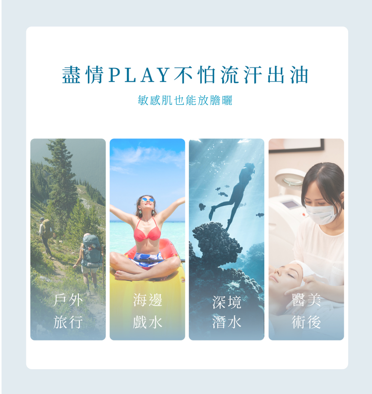 - UV防護力>98% 輕薄不死白,遇水不脫落不流白汗