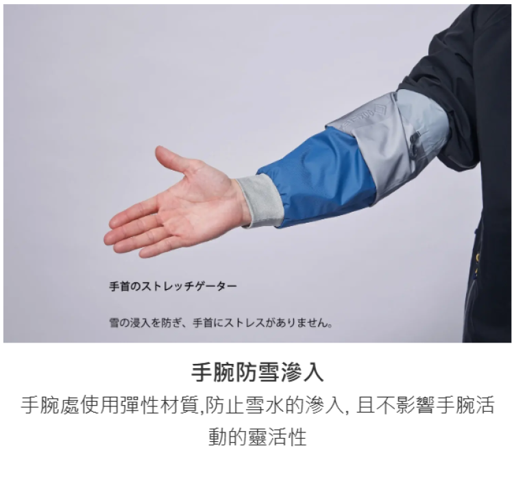 - 手腕、腰部雪裙設計,防雪滲入