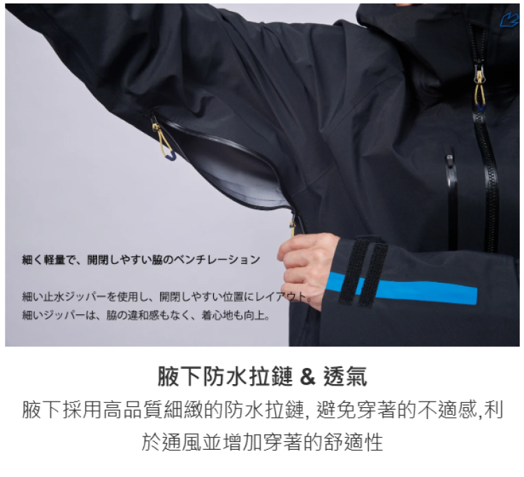 - 腋下防水拉鏈 & 透氣