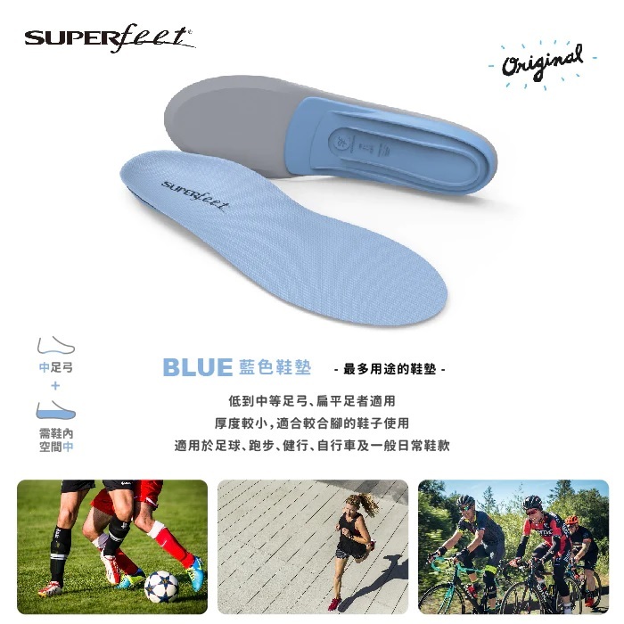 - 多用途款鞋墊 (足球、跑步、健行、自行車專用車鞋及一般日常用)