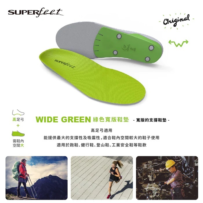- 專為寬腳板/寬楦設計(跑鞋、健行鞋、登山鞋、工業安全鞋)