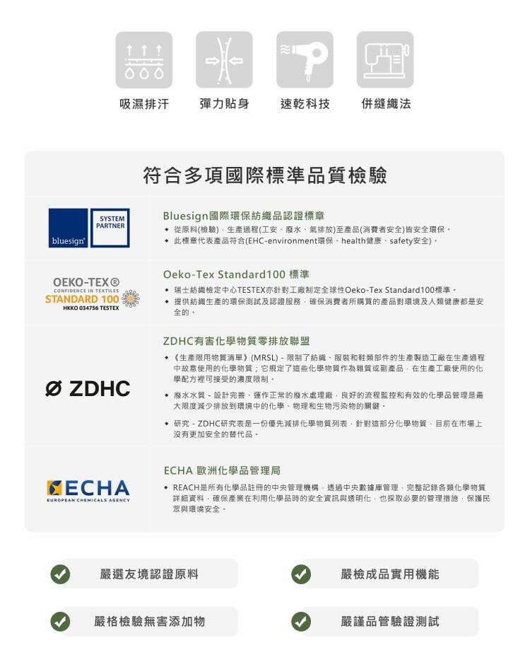 -【吸濕排汗】使用快乾面料,穿著舒適透氣