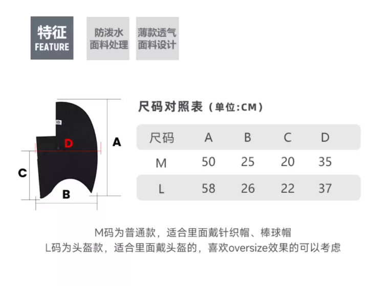 -分為:普通款M(不可內佩戴頭盔使用)/頭盔款(可內佩戴頭盔)