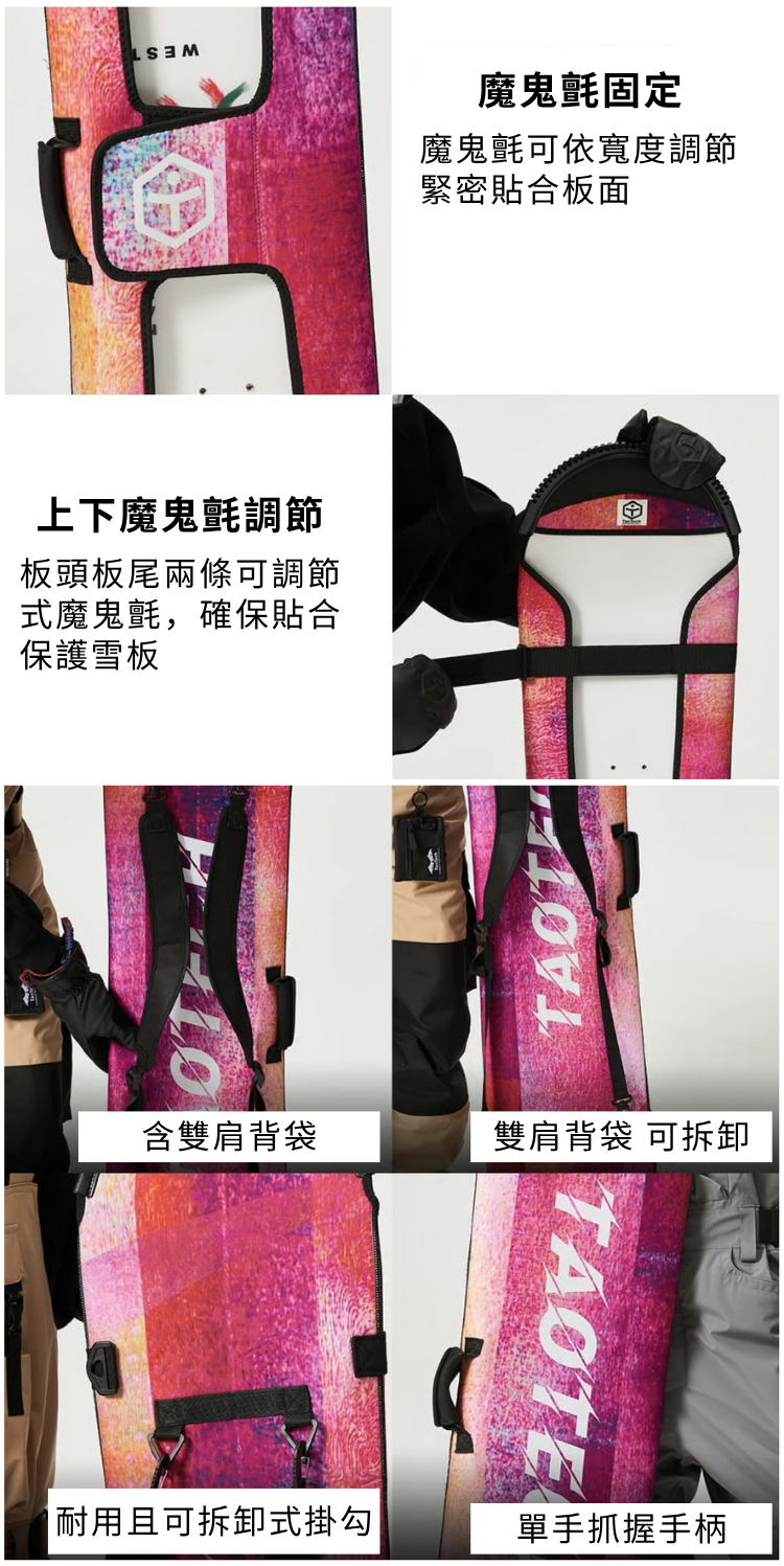 - 可容納雪板尺寸長度 ± 3~4cm